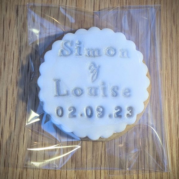 Why stop at your wedding cake? I am delighted to offer personalised Wedding Favour biscuits to add that special touch to your big day.